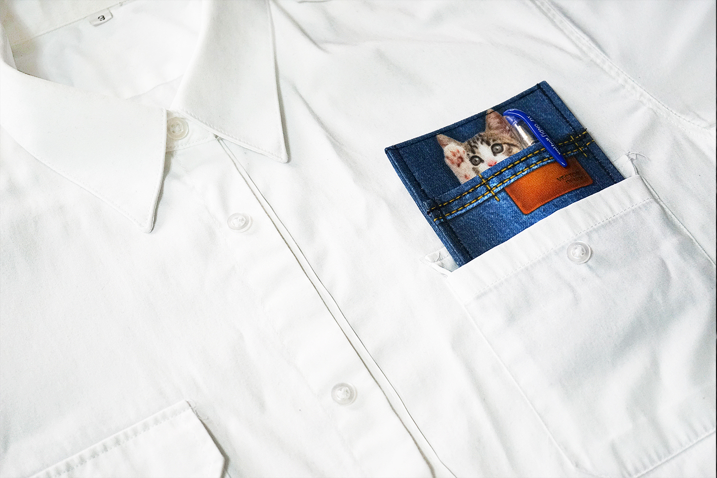 100%純手工台灣製作的工作服口袋防污筆袋。原子筆插在白色的制服或工作服口袋時,常常會因為墨水溢漏或是脫蓋而弄髒衣服,使用防污筆袋即可解決此困擾。硬挺的厚襯布料材質可防止筆傾倒亂跑,帆布布紋的摩擦力也使得筆袋不易掉出。-客製資訊-